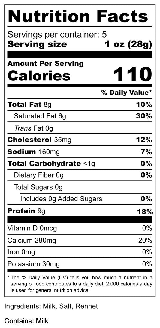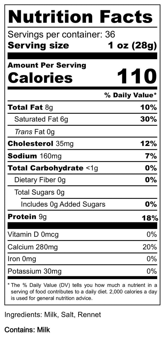 An authentic Italian cheese—crafted in the heart of Italy using time-honored traditions. Made with just three pure ingredients: milk, salt, and rennet. Nothing artificial. Ever. Naturally lactose free, high in protein, and rich in calcium, it’s a smart, nourishing choice for those who care about clean, honest food. Each bite melts on the tongue with bold, creamy flavor.